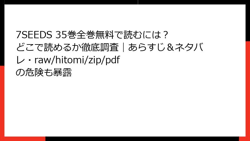 人気漫画「7SEEDS」をraw、hitomi、zip、pdf、漫画バンクなどの海賊版サイトで読むことは、手軽に見える一方で深刻なリスクを伴います。これらのサイトは著作権を侵害した違法コンテンツを提供しており、利用者は知らず知らずのうちに危険にさらされます。本記事では、そのリスクを法的、セキュリティ、プライバシー、倫理的側面から詳しく解説します。海賊版の利用は避け、正規の手段を選ぶことを強くおすすめします。
