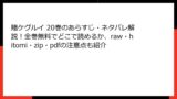 この記事では、漫画「ゲーム悪役貴族に転生した俺は、チート筋肉で無双する」をraw、hitomi、zip、pdf、漫画バンクなどの海賊版サイトで読むことのリスクについて、詳しく解説します。海賊版サイトは一見便利に見えますが、さまざまな危険が潜んでいます。法的問題からセキュリティの脅威まで、読み応えのある内容でまとめました。海賊版の利用は避け、合法的な手段を選ぶことを強くおすすめします。