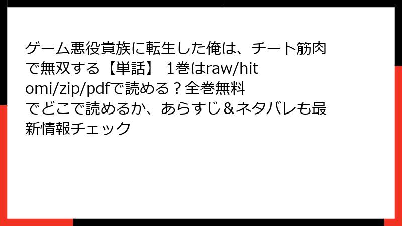 この記事では、漫画「ゲーム悪役貴族に転生した俺は、チート筋肉で無双する」の1巻について、詳細なネタバレ情報をブログ形式でまとめます。異世界転生と筋肉要素が融合したユニークなストーリーを、徹底的に掘り下げます。注意:この記事は重大なネタバレを含みます。未読の方はご注意ください。