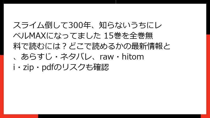 スライム倒して300年、知らないうちにレベルMAXになってました 15巻 を海賊版サイトで読むリスク