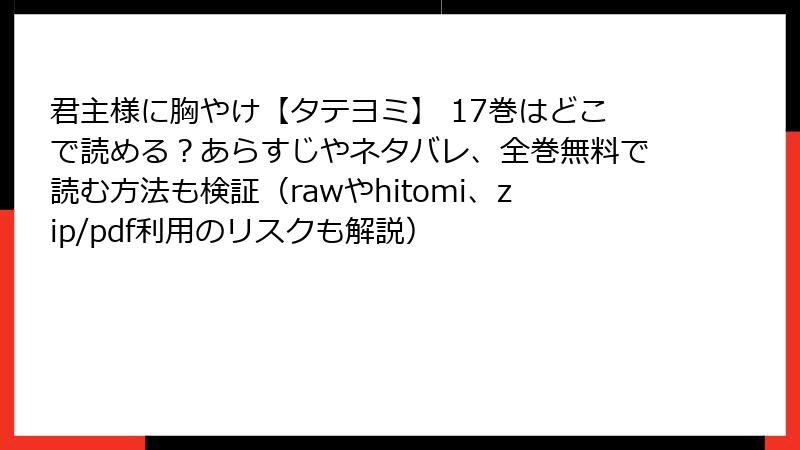人気のタテヨミ漫画「君主様に胸やけ【タテヨミ】」を、raw、hitomi、zip、pdf、漫画バンクなどの海賊版サイトで読むことのリスクについて、詳しく解説します。このようなサイトは無料でアクセスしやすく魅力的に見えますが、さまざまな危険が潜んでいます。法的問題からセキュリティの脅威まで、幅広い観点から考察し、なぜ避けるべきかをブログ形式でお伝えします。以下で具体的に掘り下げていきましょう。