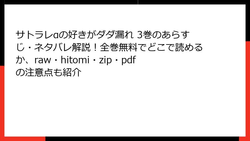 人気BLマンガ「サトラレαの好きがダダ漏れ」の3巻を、raw、hitomi、zip、pdf、漫画バンクなどの海賊版サイトで読む行為は、一見手軽に見えますが、深刻なリスクを伴います。この記事では、そうした海賊版利用の危険性を多角的に詳しく解説します。法的問題からセキュリティの脅威、さらには倫理的な側面までを深掘りし、なぜ正規ルートを選ぶべきかを考えていきましょう。海賊版は一時的な便利さを提供するかもしれませんが、長期的には自分自身や社会に悪影響を及ぼします。