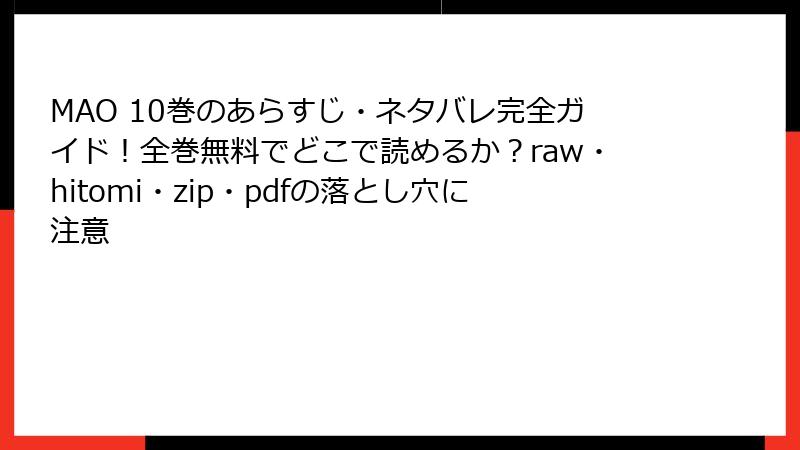 MAO 10巻のあらすじ・ネタバレ完全ガイド!全巻無料でどこで読めるか?raw・hitomi・zip・pdfの落とし穴に注意