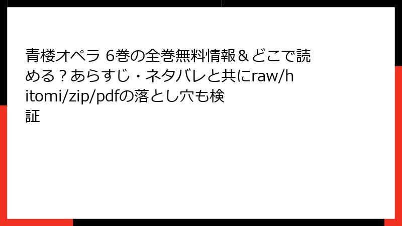 これらを踏まえ、複数のサービスを比較して最適なものを選べば、快適に「青楼オペラ」6巻を楽しめます。