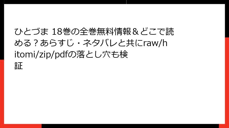 人気の成人向け漫画「ひとづま」18巻を、raw、hitomi、zip、pdf、漫画バンクなどの海賊版サイトで読むのは、手軽に思えるかもしれません。しかし、これらのサイトを利用することは多大なリスクを伴います。この記事では、法的側面からセキュリティ、品質の問題まで、詳しく解説します。海賊版の利用は避け、正規の手段で楽しむことを強くおすすめします。