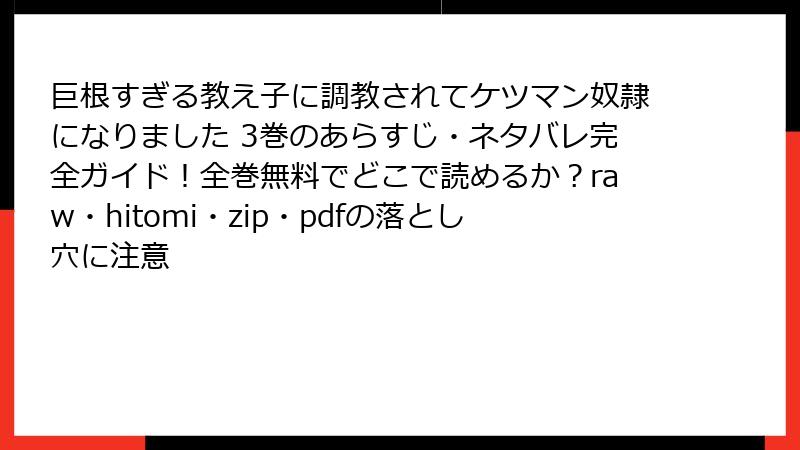 の見出しタグから始めて、ブログ記事形式で出力して。複数の タグを使用して、読み応えがあるように。HTMLで出力。 や などの箇条書きのHTMLタグや、tableタグも使用してOK。ただし、リンクやURLは、絶対に、挿入しない。 巨根すぎる教え子に調教されてケツマン奴隷になりました 3巻 ネタバレ