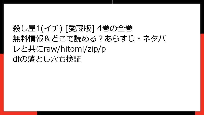 ![殺し屋1(イチ) [愛蔵版] 4巻をraw/hitomi/zip/pdf/漫画バンクなどの海賊版サイトで読むリスク](https://sarakimt.co.jp/manga/wp-content/uploads/2025/12/article_20251225_094425_451.jpg)