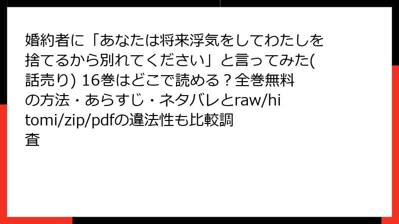 婚約者に「あなたは将来浮気をしてわたしを捨てるから別れてください」と言ってみた 16巻を海賊版サイトで読むリスク