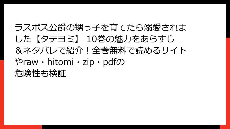人気のタテヨミコミック「ラスボス公爵の甥っ子を育てたら溺愛されました」を、raw、hitomi、zip、pdf、漫画バンクなどの海賊版サイトで読むのは一見便利に思えますが、実は多くの危険が潜んでいます。この記事では、そんな海賊版サイト利用のリスクを法的、セキュリティ、倫理的側面から詳しく解説します。無料で読める魅力に惹かれるかもしれませんが、深刻な問題を引き起こす可能性があることを知っておきましょう。完全無料を謳うサイトの裏側を深掘りし、なぜ避けるべきかを読み応えのある形でまとめます。