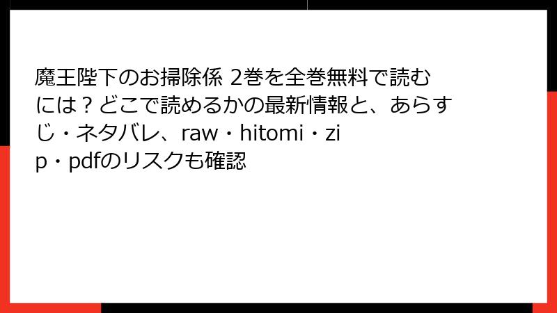 この記事では、漫画「魔王陛下のお掃除係」2巻をraw、hitomi、zip、pdf、漫画バンクなどの海賊版サイトで読むことの潜在的なリスクを詳しく解説します。海賊版サイトは手軽にアクセスできるように見えますが、さまざまな問題を引き起こす可能性があります。以下で法的、セキュリティ、品質、倫理的な側面から掘り下げていきましょう。注意点として、これらのリスクを理解した上で、適切な選択をすることが重要です。
