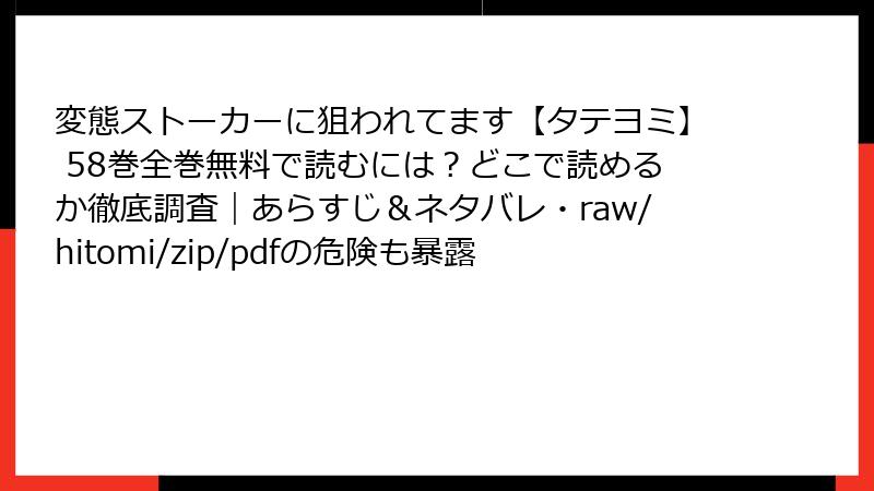 - 変態ストーカーに狙われてます【タテヨミ】 58巻の詳細なあらすじ