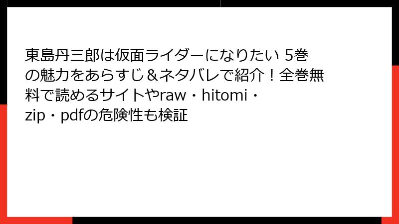 - Reputation and Reviews of “Tojima Tanzaburo wa Kamen Rider ni Naritai” Volume 5