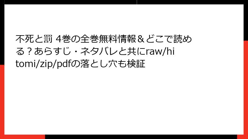 - 不死と罰 4巻をraw/hitomi/zip/pdf/漫画バンクなどの海賊版サイトで読むリスク