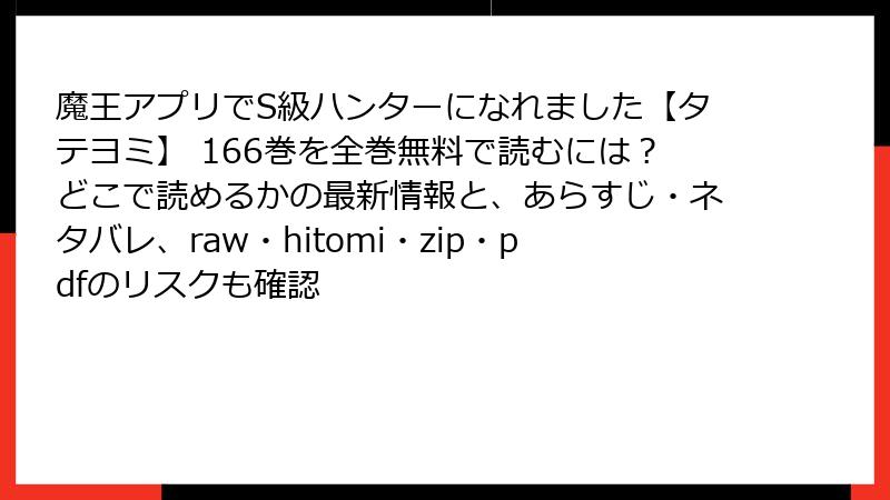 - 魔王アプリでS級ハンターになれました【タテヨミ】 166巻を海賊版サイトで読むリスク