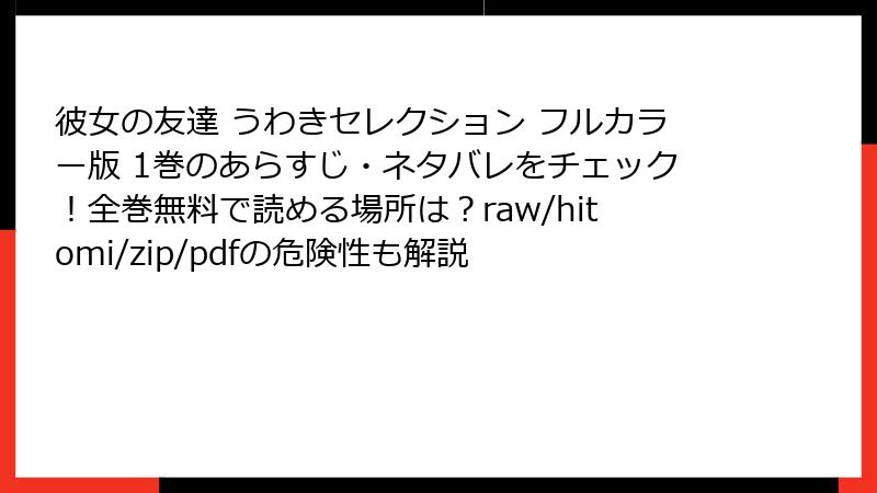 - 彼女の友達 うわきセレクション フルカラー版 1巻 を海賊版サイトで読むリスク