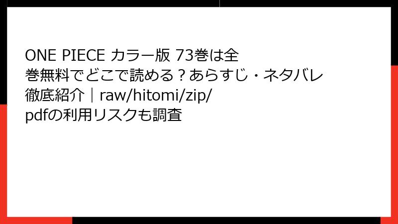- ONE PIECE カラー版 73巻の電子書籍配信状況