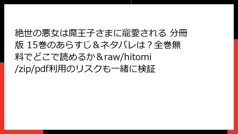 - 絶世の悪女は魔王子さまに寵愛される 分冊版 15巻 ネタバレ