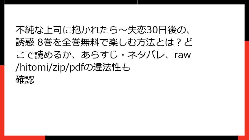 - 不純な上司に抱かれたら~失恋30日後の、誘惑 8巻 ネタバレ