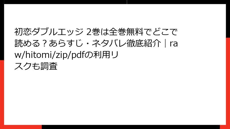 初恋ダブルエッジ 2巻は全巻無料でどこで読める?あらすじ・ネタバレ徹底紹介|raw/hitomi/zip/pdfの利用リスクも調査