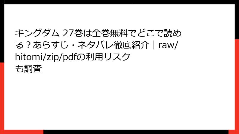 キングダム 27巻は全巻無料でどこで読める?あらすじ・ネタバレ徹底紹介|raw/hitomi/zip/pdfの利用リスクも調査