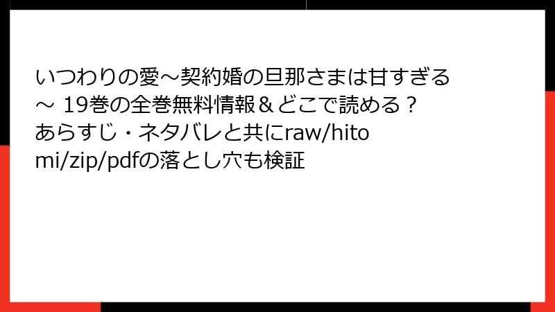 - いつわりの愛~契約婚の旦那さまは甘すぎる~ 19巻