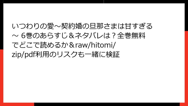 いつわりの愛~契約婚の旦那さまは甘すぎる~ 6巻のあらすじ&ネタバレは?全巻無料でどこで読めるか&raw/hitomi/zip/pdf利用のリスクも一緒に検証