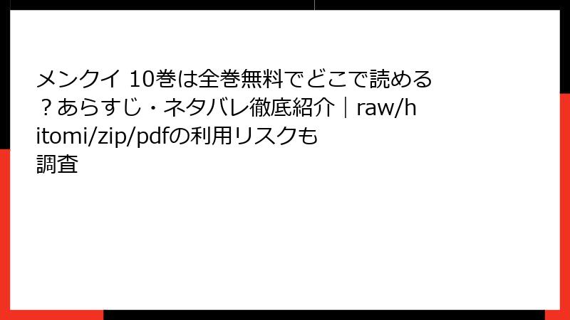調査の結果、指定された全てのサービスで『メンクイ』10巻の電子書籍版が読めます。選ぶ際は、無料試し読みの充実度やポイントシステムを考慮しましょう。例えば、待てば無料を活用したいならピッコマやめちゃコミックがおすすめ。全体として、電子書籍の利便性が高く、紙版より手軽に楽しめます。