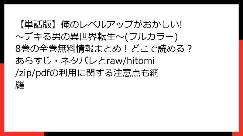 - 【単話版】俺のレベルアップがおかしい! ~デキる男の異世界転生~(フルカラー) 8巻 を海賊版サイトで読むリスク