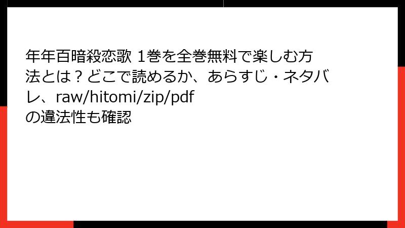 年年百暗殺恋歌 1巻を全巻無料で楽しむ方法とは?どこで読めるか、あらすじ・ネタバレ、raw/hitomi/zip/pdfの違法性も確認