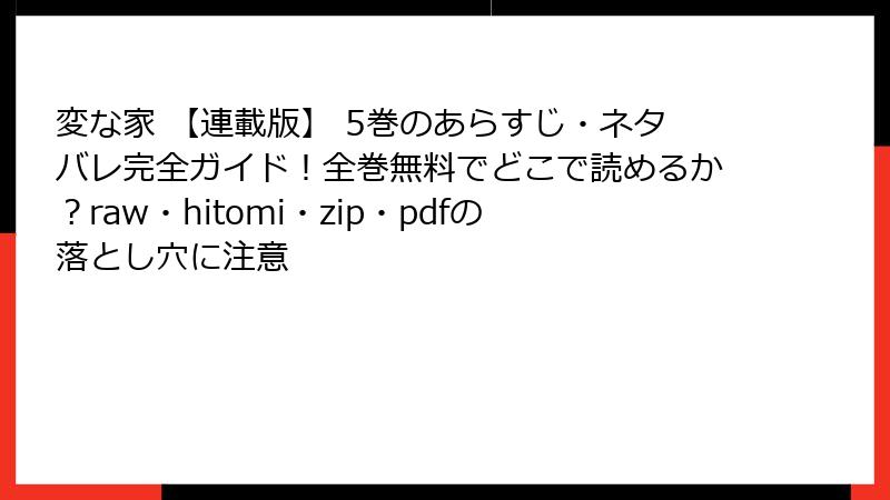 変な家 【連載版】 5巻のあらすじ・ネタバレ完全ガイド!全巻無料でどこで読めるか?raw・hitomi・zip・pdfの落とし穴に注意