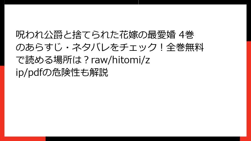 呪われ公爵と捨てられた花嫁の最愛婚 4巻のあらすじ・ネタバレをチェック!全巻無料で読める場所は?raw/hitomi/zip/pdfの危険性も解説