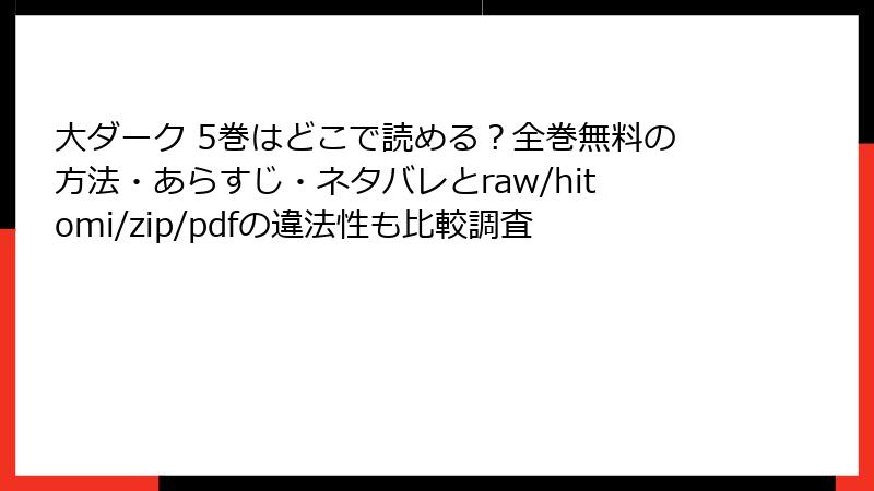 ブックライブでは、『大ダーク』5巻の検索結果が見つかりませんでした。配信されていない可能性が高く、シリーズ全体も確認できませんでした。ブックライブは小学館の作品を多く扱っていますが、この巻については未対応のようです。将来的に追加されるかもしれませんが、現時点では他のサービスをおすすめします。