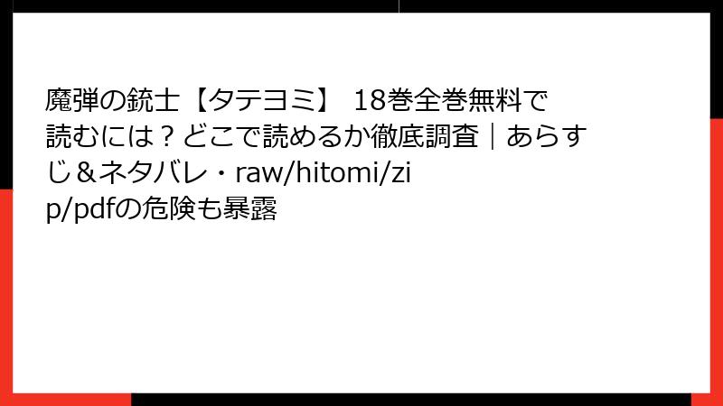 魔弾の銃士【タテヨミ】 18巻全巻無料で読むには?どこで読めるか徹底調査|あらすじ&ネタバレ・raw/hitomi/zip/pdfの危険も暴露
