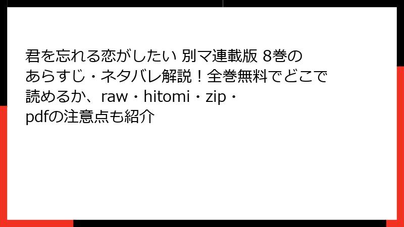 君を忘れる恋がしたい 別マ連載版 8巻のあらすじ・ネタバレ解説!全巻無料でどこで読めるか、raw・hitomi・zip・pdfの注意点も紹介