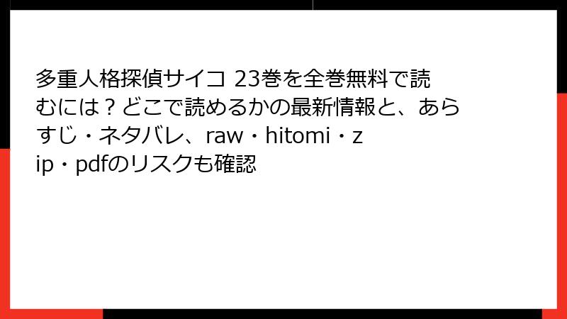 多重人格探偵サイコ 23巻を全巻無料で読むには?どこで読めるかの最新情報と、あらすじ・ネタバレ、raw・hitomi・zip・pdfのリスクも確認