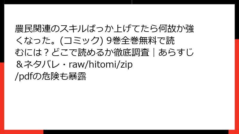 農民関連のスキルばっか上げてたら何故か強くなった。(コミック) 9巻全巻無料で読むには?どこで読めるか徹底調査|あらすじ&ネタバレ・raw/hitomi/zip/pdfの危険も暴露