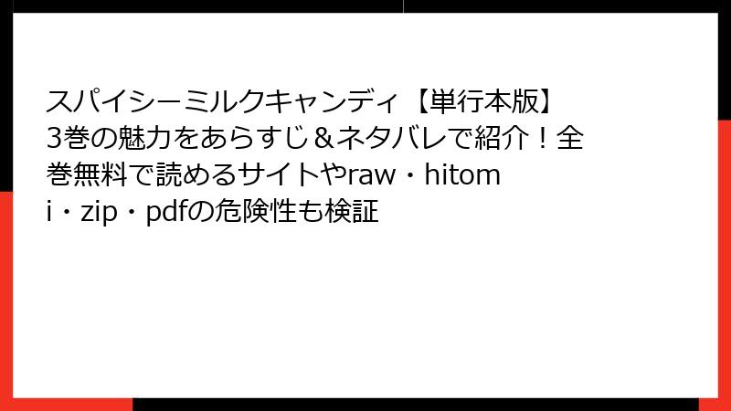 スパイシーミルクキャンディ【単行本版】 3巻の魅力をあらすじ&ネタバレで紹介!全巻無料で読めるサイトやraw・hitomi・zip・pdfの危険性も検証