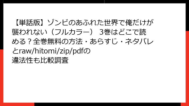 - 【単話版】ゾンビのあふれた世界で俺だけが襲われない(フルカラー) 3巻をraw/hitomi/zip/pdf/漫画バンクなどの海賊版サイトで読むリスク