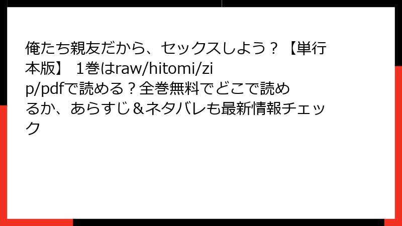 俺たち親友だから、セックスしよう?【単行本版】 1巻はraw/hitomi/zip/pdfで読める?全巻無料でどこで読めるか、あらすじ&ネタバレも最新情報チェック