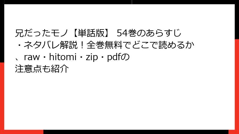 兄だったモノ【単話版】 54巻をraw/hitomi/zip/pdf/漫画バンクなどの海賊版サイトで読むリスク