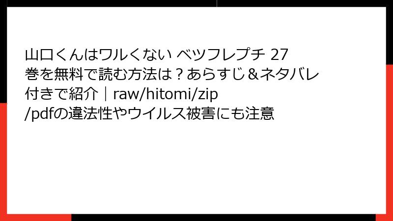 漫画やコミックをraw、hitomi、zip、pdf、漫画バンクなどの海賊版サイトで読むのは、手軽に思えるかもしれませんが、多くの深刻なリスクを伴います。これらのサイトは著作権を侵害した違法コンテンツを扱っており、利用者は知らず知らずのうちに法的・セキュリティ的な問題に巻き込まれる可能性があります。この記事では、そんなリスクを詳しく解説し、なぜ避けるべきかを考察します。合法的な手段で楽しむことの重要性を理解しましょう。