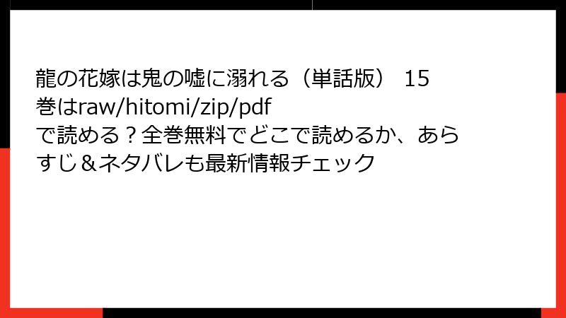 龍の花嫁は鬼の嘘に溺れる(単話版) 15巻はraw/hitomi/zip/pdfで読める?全巻無料でどこで読めるか、あらすじ&ネタバレも最新情報チェック