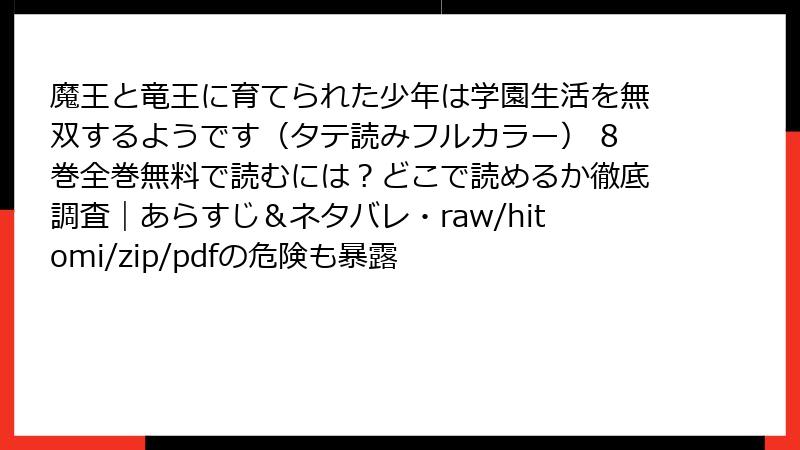 魔王と竜王に育てられた少年は学園生活を無双するようです(タテ読みフルカラー) 8巻全巻無料で読むには?どこで読めるか徹底調査|あらすじ&ネタバレ・raw/hitomi/zip/pdfの危険も暴露
