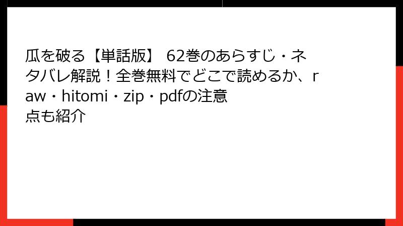 瓜を破る【単話版】 62巻のあらすじ・ネタバレ解説!全巻無料でどこで読めるか、raw・hitomi・zip・pdfの注意点も紹介