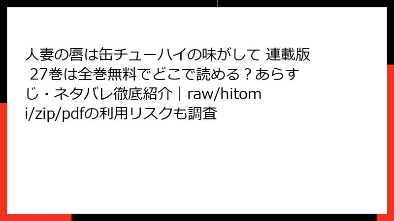人妻の唇は缶チューハイの味がして 連載版 27巻は全巻無料でどこで読める?あらすじ・ネタバレ徹底紹介|raw/hitomi/zip/pdfの利用リスクも調査