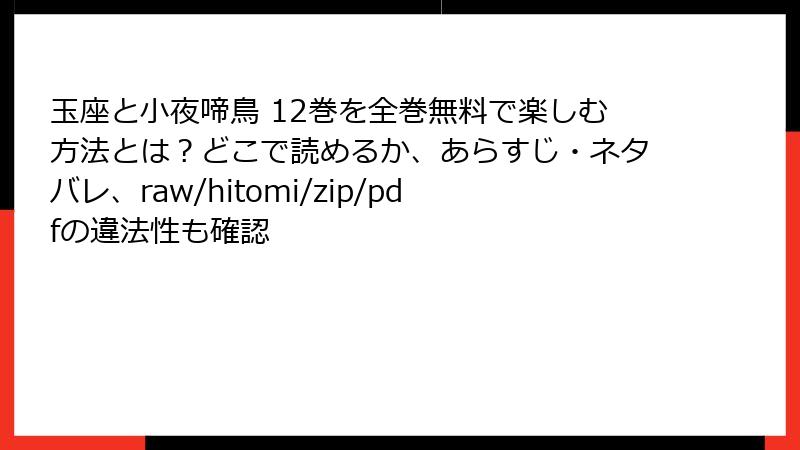 玉座と小夜啼鳥 12巻を全巻無料で楽しむ方法とは?どこで読めるか、あらすじ・ネタバレ、raw/hitomi/zip/pdfの違法性も確認