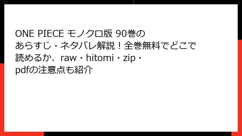 ONE PIECE モノクロ版 90巻のあらすじ・ネタバレ解説!全巻無料でどこで読めるか、raw・hitomi・zip・pdfの注意点も紹介