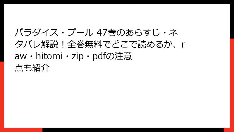 - パラダイス・プール 47巻の詳細あらすじ