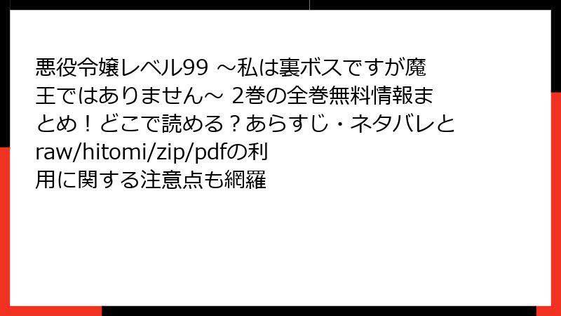 悪役令嬢レベル99 ~私は裏ボスですが魔王ではありません~ 2巻の全巻無料情報まとめ!どこで読める?あらすじ・ネタバレとraw/hitomi/zip/pdfの利用に関する注意点も網羅