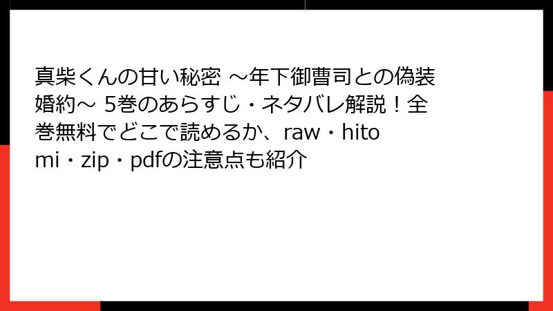 真柴くんの甘い秘密 ~年下御曹司との偽装婚約~ 5巻のあらすじ・ネタバレ解説!全巻無料でどこで読めるか、raw・hitomi・zip・pdfの注意点も紹介